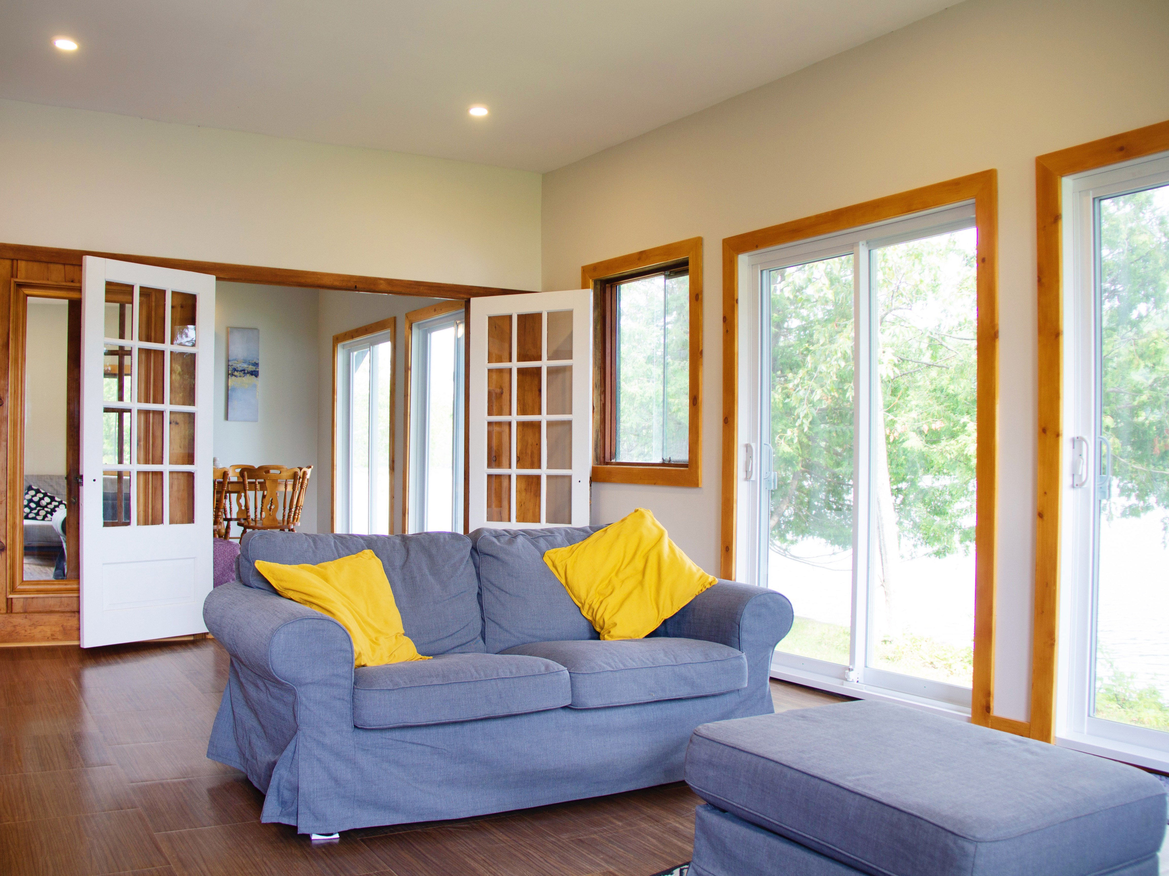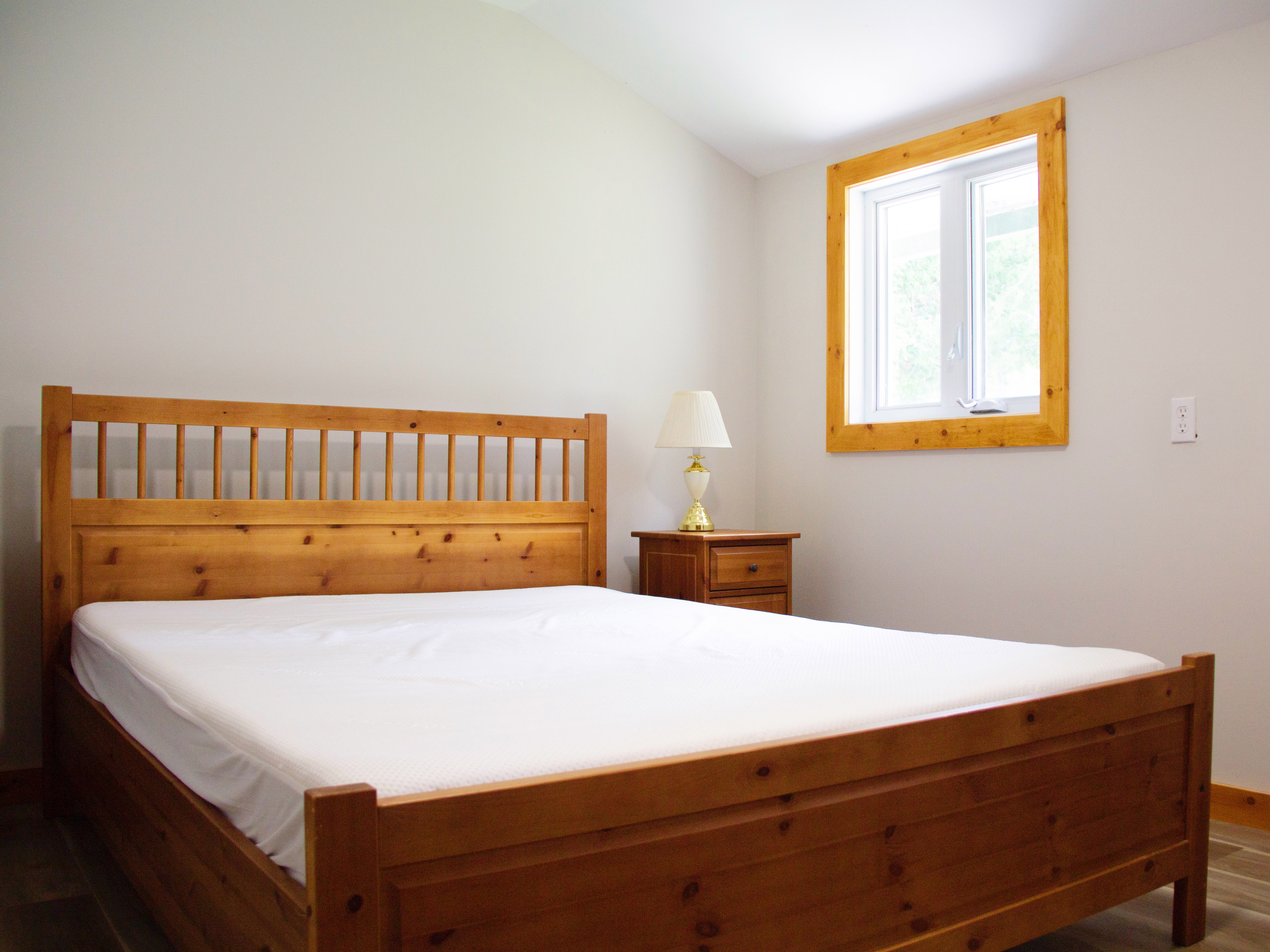 This freshly renovated (2020) unit on a stunning lakefront location features a living room and dining area lined with windows and sliding glass doors just meters away from our gorgeous Lac Castor! It has a fully equipped kitchen and a three-piece bathroom. Sleeping space for six is available in its two bedrooms.(Bedroom 1: Queen bed, Bedroom 2: Queen bed & bunk bed)
