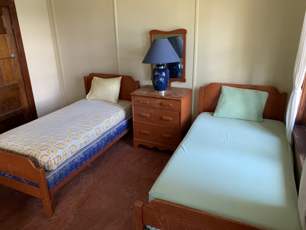 Cabins 1 & 3: 1 single-over-single bunk bed, 1 single-over-double bunk bed (sleeps 5) – $72/night (Peak Season), $56/night (Off-season)