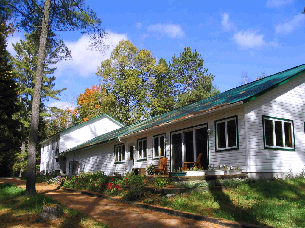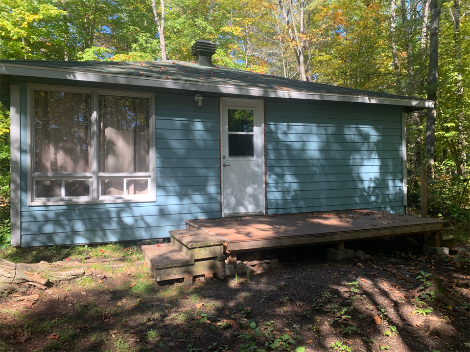 (Formerly known as the Director’s Cottage or Manager’s Cottage) A rustic, secluded cottage ideal for gatherings of family and friends. The Cottage has a 3pc washroom, fully-equipped cottage kitchen, lounge/dining room with wood fireplace, two bedrooms, capacity for up to eight 8 people and a bunkie that can sleep 3 more, a screened-in porch facing the water, and an outside firepit.